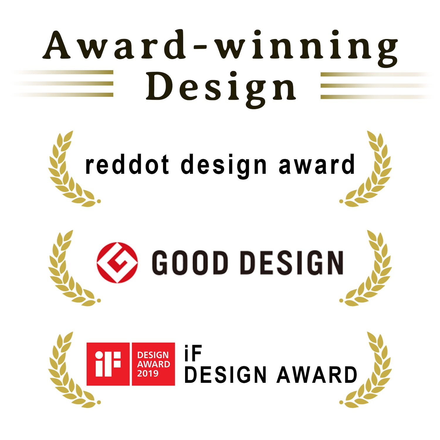 Winner of the Good Design Award (Japan) and the iF Design Award (Germany); also recognized by the Red Dot Award (Germany).